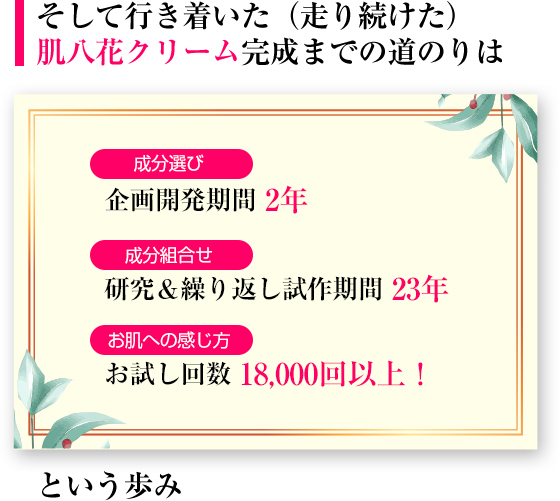 肌八花の研究は一人の化粧家(化粧品製造プロデューサー)の切実な願いから始まりました。