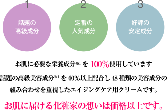 過去に例のないほどの美容成分配合数※3と配合率※3を誇るエイジングケアクリームです。