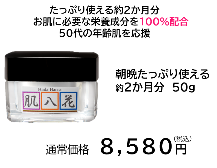 使用感だけが良いクリームもあると思いますが肌八花クリームはご満足を得られるように48種類以上の話題の美容成分をバランス良く配合しています